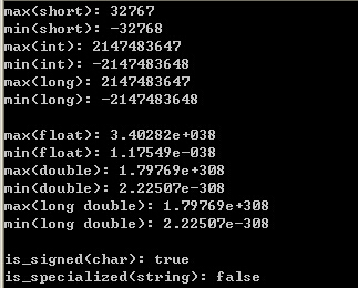 cout << "min(long): " << numeric_limits<long>::min() << endl;