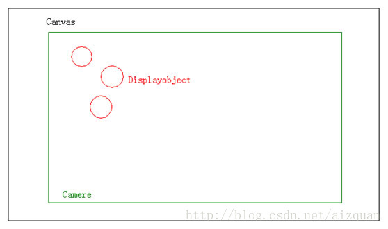 最简单的图形引擎,主要三个部分:摄影机(Camera),场景画布(Canvas),画布中的显示对象(Displayobject)。